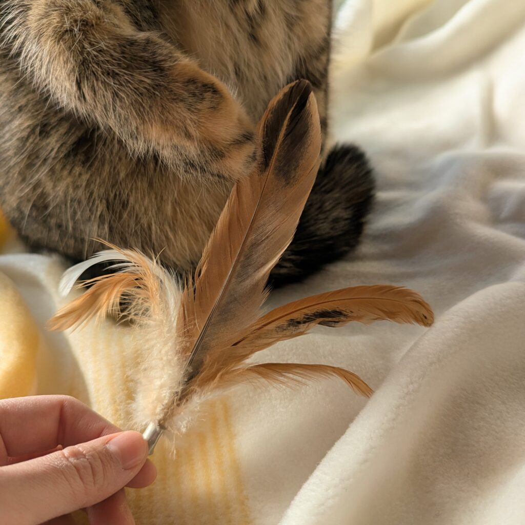 自宅飼育ニワトリの羽じゃらし